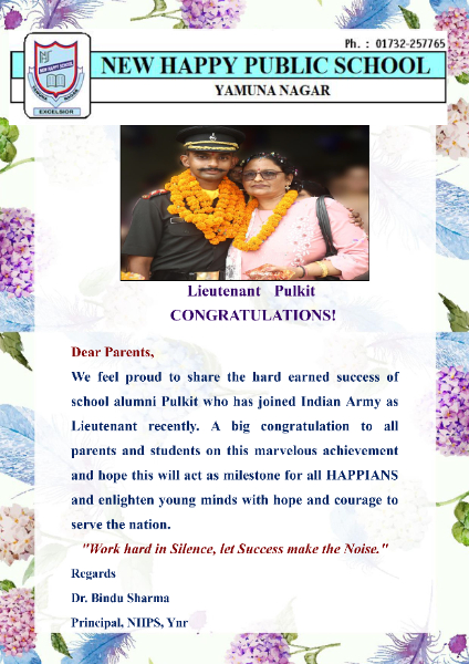 School Alumni : Capt. Pulkit (Indian Armed Forces)